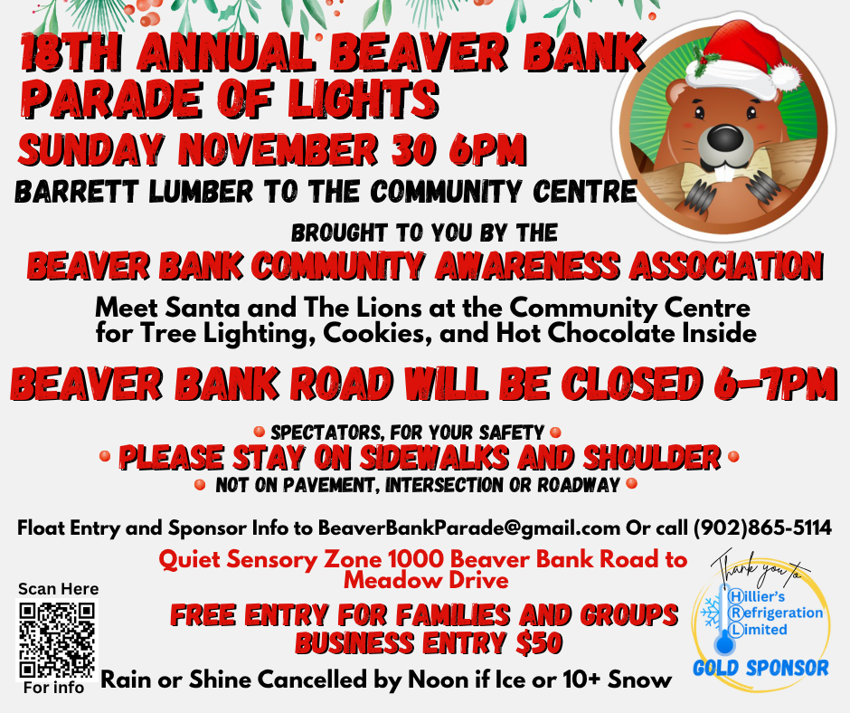 Meet Santa and the Lions at the Community Centre for Tree Lighting, cookies and hot chocolate inside. Parade route is from Barrett Lumber to the Community Centre