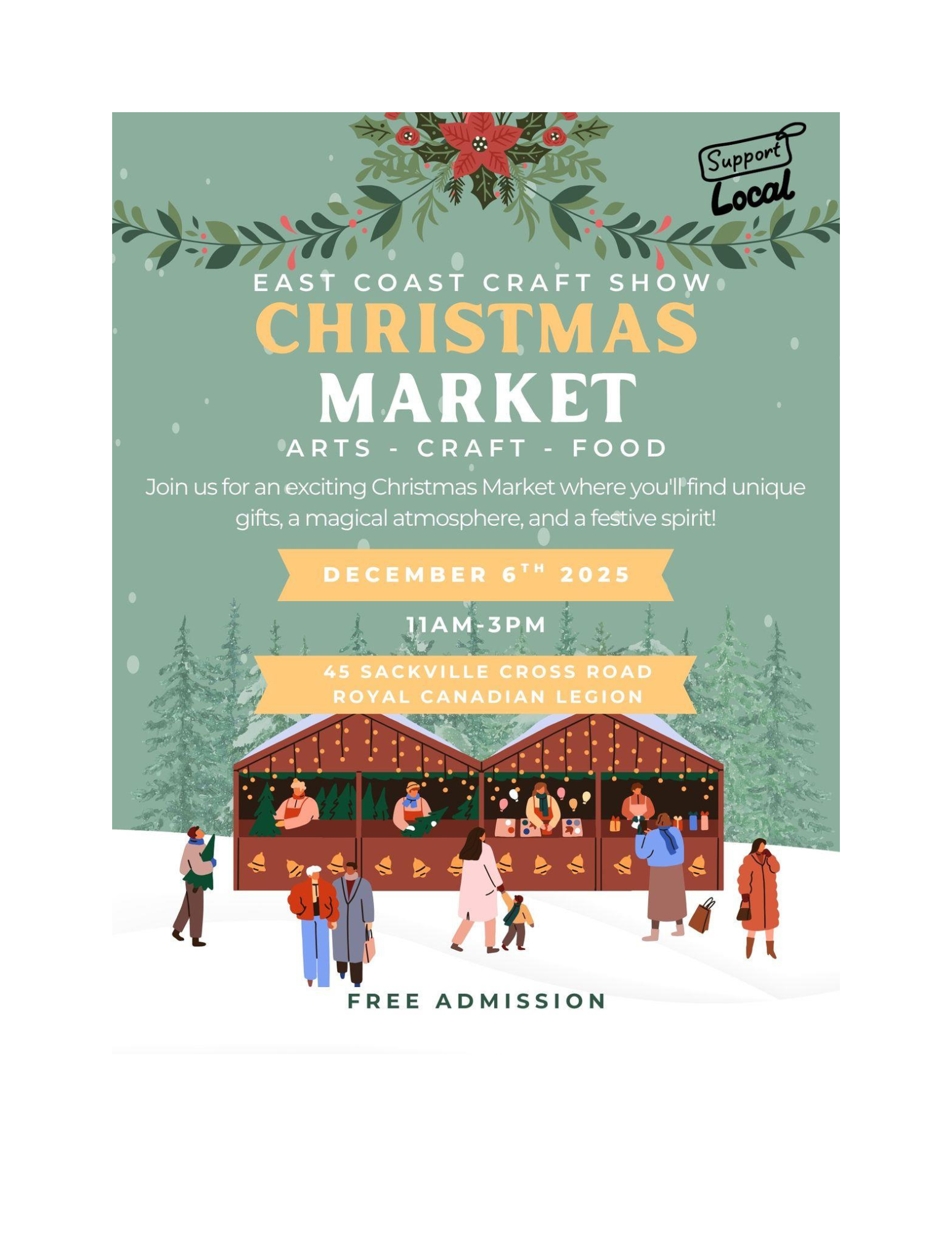 Sackville Legion 45 Sackville Cross Road, Lower SackvilleJoin us for an exciting Christmas Market where you'll find unique gifts, a magical atmosphere and a festive spirit!